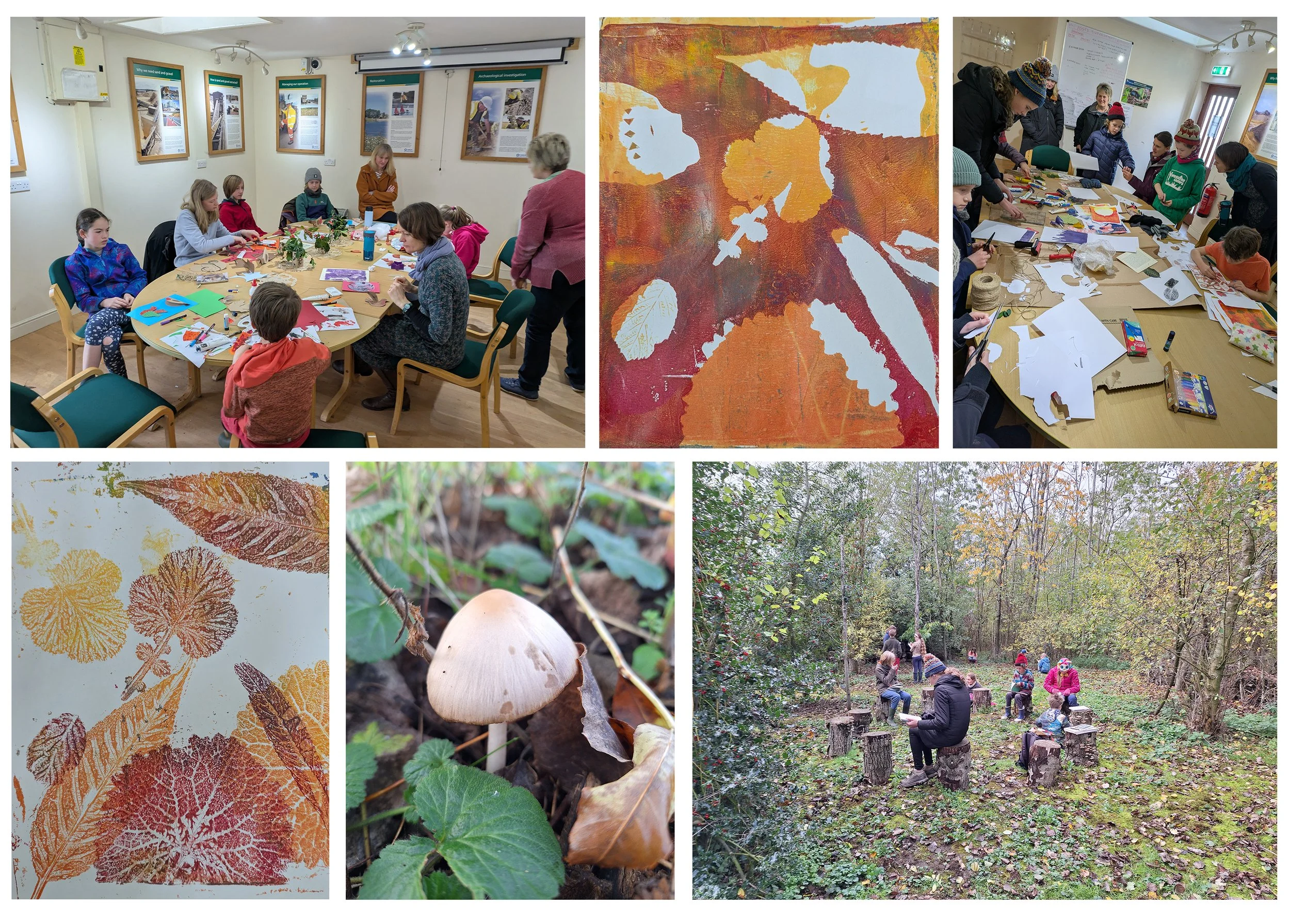 North Yorkshire Nature Explorers home education group visited Nosterfield in October, November and December. Activities included a fungi walk, autumn leaf Gelli printing and a robin-themed craft workshop in December.