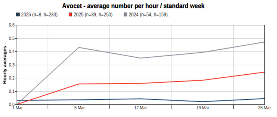 The first Avocet of the spring appeared on 4th and was the herald of a disappointing month for this species. There has been a gentle decline in March records of late, the cause of which is a matter of conjecture.