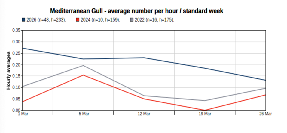 March counts per/observation hour of Mediterranean Gull